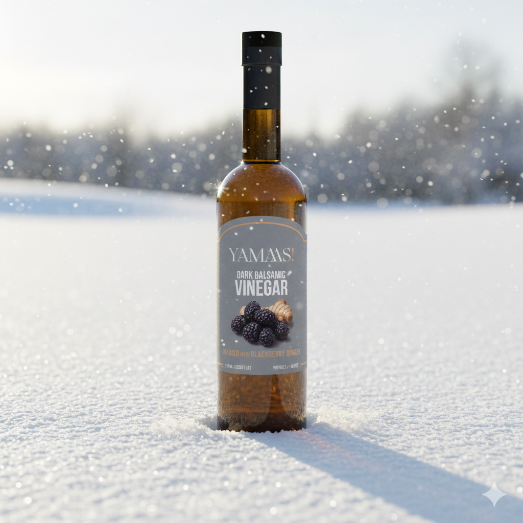 Our Dark Blackberry & Ginger Balsamic Vinegar is the kind of flavor that feels right at home in winter. Deep, juicy blackberries bring a rich, almost jammy sweetness, while a bright hint of ginger adds gentle warmth and spice — the culinary equivalent of a crackling fire and a good pour of something dark.
